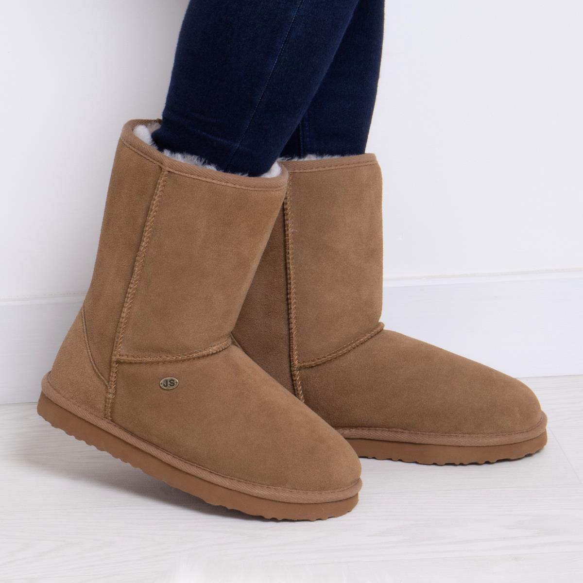 Our Short Classic Boots are made from pure, luxurious sheepskin and so offer the ultimate in both comfort and warmth. They're only available in full sizes so if you usually wear a half size, we'd recommend ordering a size down. These short boots are approximately 22cm high and have a rubber outsole.